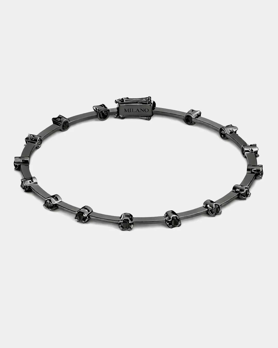 A Riviera Fio Nero é uma joia de conforto atemporal e presença marcante, confeccionada em prata 925 e cravada com espinélio negro lapidado, formando um traço contínuo de brilho profundo e elegante. O contraste entre o tom intenso das pedras e o metal nobre cria um visual moderno e sofisticado, enquanto o design articulado proporciona leveza e conforto ao uso.